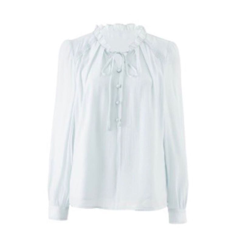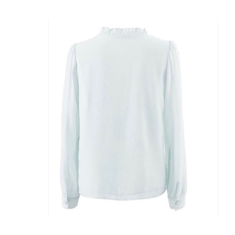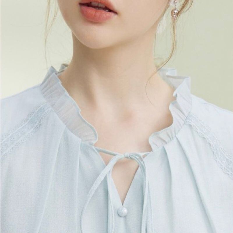 リボンタイ×くるみボタン フリルネックブラウス 00023