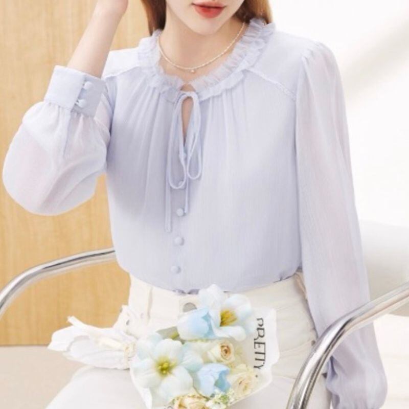 リボンタイ付きフリルブラウス 00024