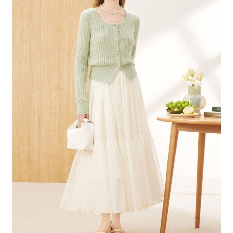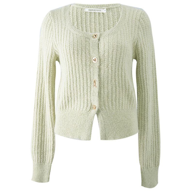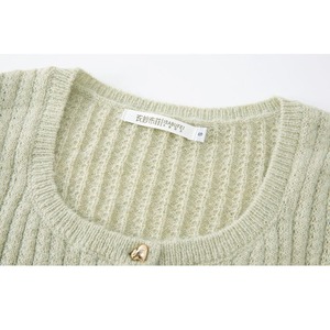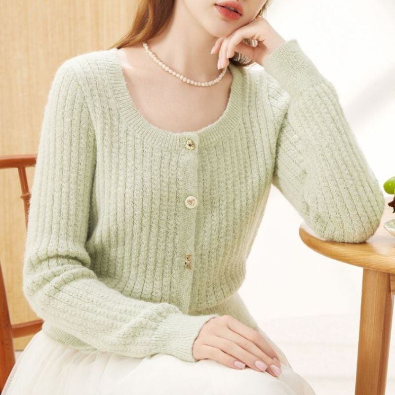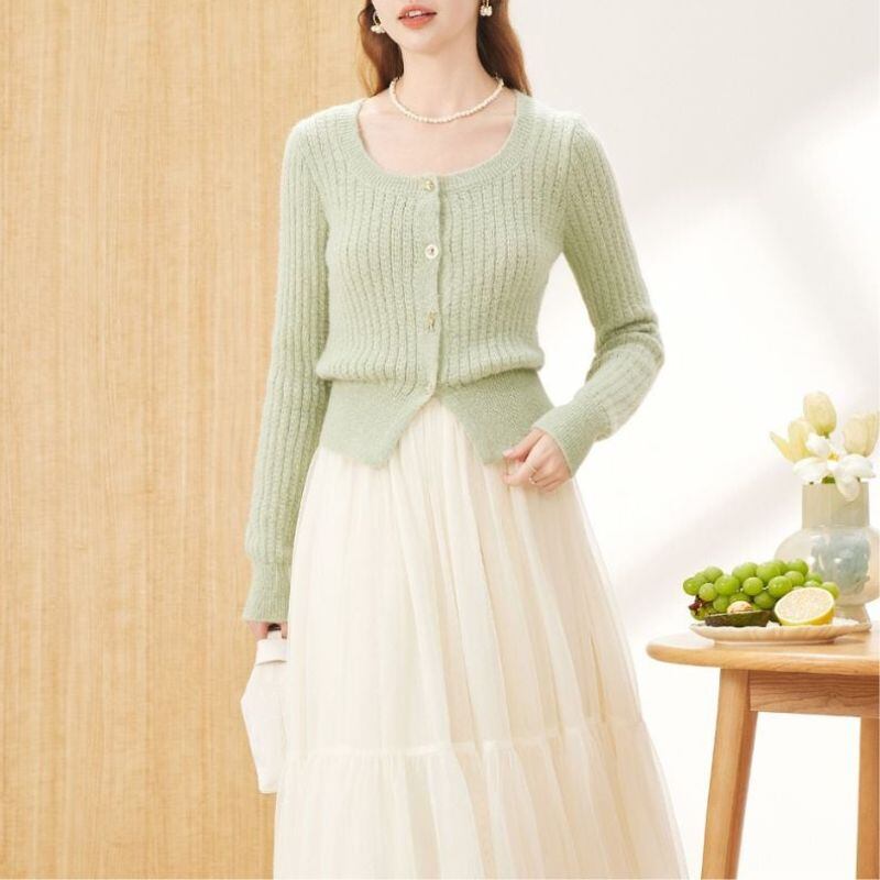 スクエアネック風 ライトグリーンニットカーディガン 00029