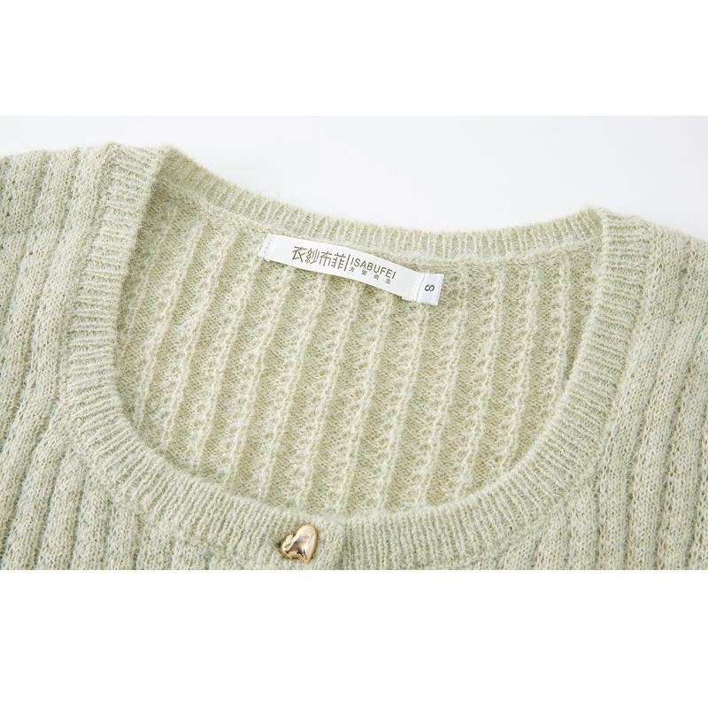 淡いライトグリーンとアクセントのボタンが愛らしいリブカーディガン。コンパクトな丈感で、ワンピースやスカートとの相性も抜群です。