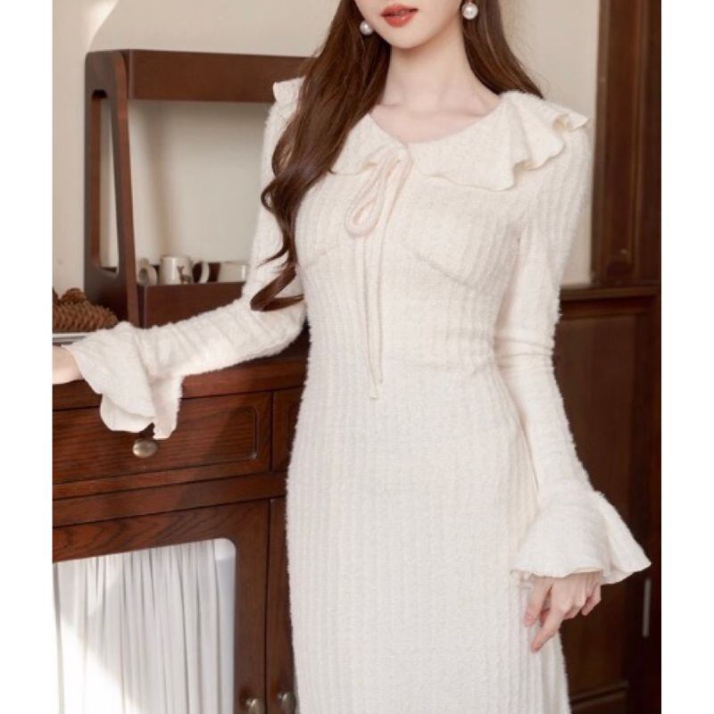 フリルカラー×リボンニットワンピース 00068