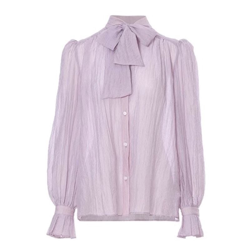 上品な透け感と繊細な風合いが魅力のリボンタイブラウス。