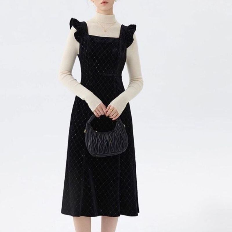タートルやブラウスとのレイヤードで、きちんと感のある大人フェミニンなコーデに。