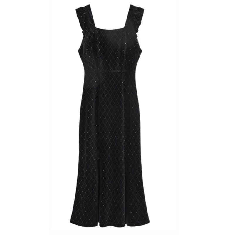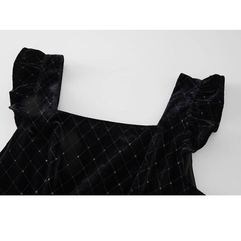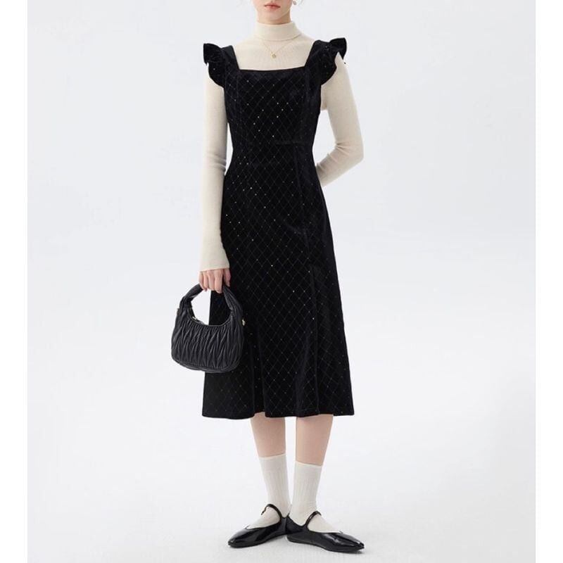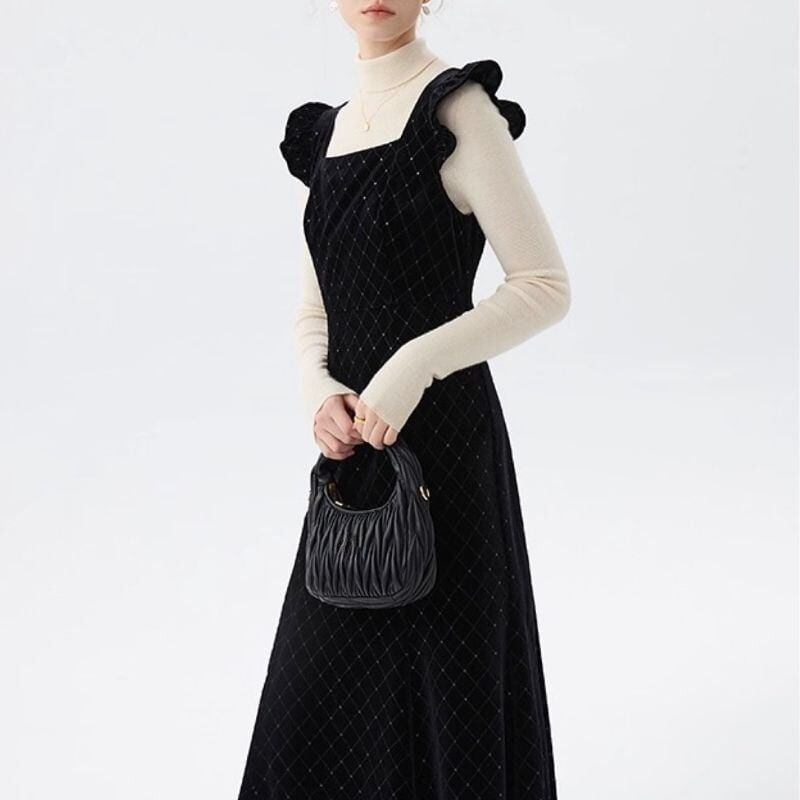 肩のフリルデザインとスクエアネックがクラシカルな印象を演出します。